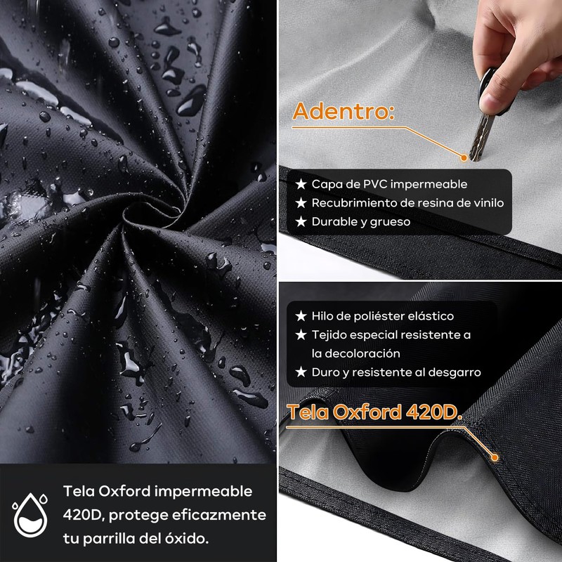 - 【Impermeable, a Prueba de Nieve y Anti-UV】: Fabricada con material de tela Oxford 420D mejorado, la funda para asador de barbacoa demuestra una solidez del color superior, resistencia a los rayos UV, repelencia a la lluvia, resistencia al desgarro y resistencia al agrietamiento por frío. Es duradero y puede soportar vientos fuertes, lluvia, tormentas, luz solar intensa, polvo, nieve y más. Esta cubierta brinda protección contra los elementos durante todo el año, manteniendo su parrilla limpia y en buen estado.