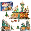 - 【Christmas Castle Building Set】Bring the magic of the holidays into your home! This large Christmas Castle building kit combines the charm of a gingerbread house with the elegance of a fairy-tale castle, recreating a festive Christmas village. The three story castle features snowy rooftops decorated with candy, Santa flying across the night sky with his sleigh, and delightful figures like a gingerbread man, nutcracker soldier, and Christmas tree to complete the holiday scene