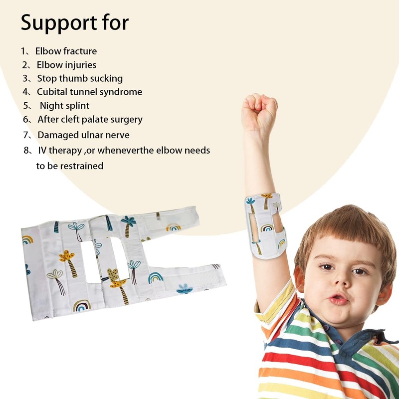 • Designed for: preventing your child's elbow from bending. Used to restrain the arm. It effectively keeps the arm in a straight position and protects the arm (elbow) during sleep or at night. Beneficial for pain relief and post-operative recovery.