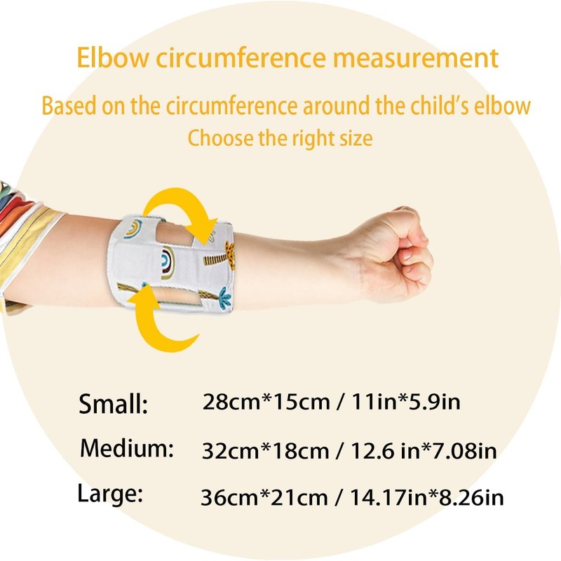 • MULTIPLE SIZES: Available in three sizes - Small fits newborns, Medium fits children with elbow circumferences of 4 to 6.5 inches, and Large fits children with elbow circumferences of 6.5 to 8.5 inches. (Note: If worn over long sleeves, add thickness to elbow circumference)