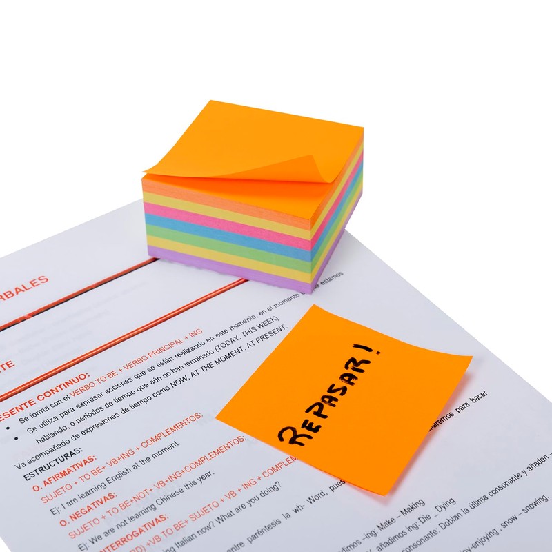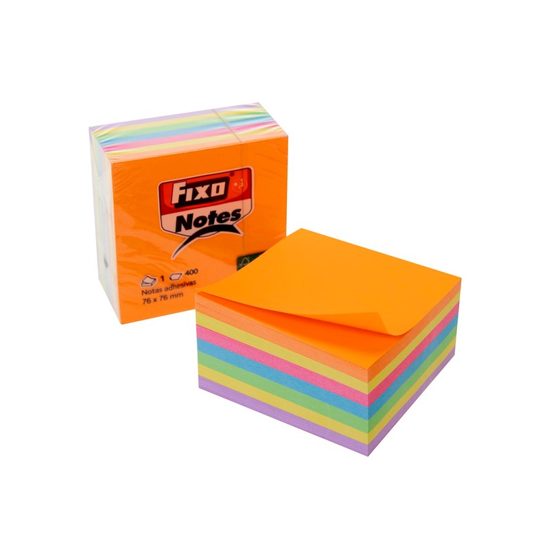 Cubo 400 Notas Adhes Ivas 76x76 mm Fixo Colores Neon