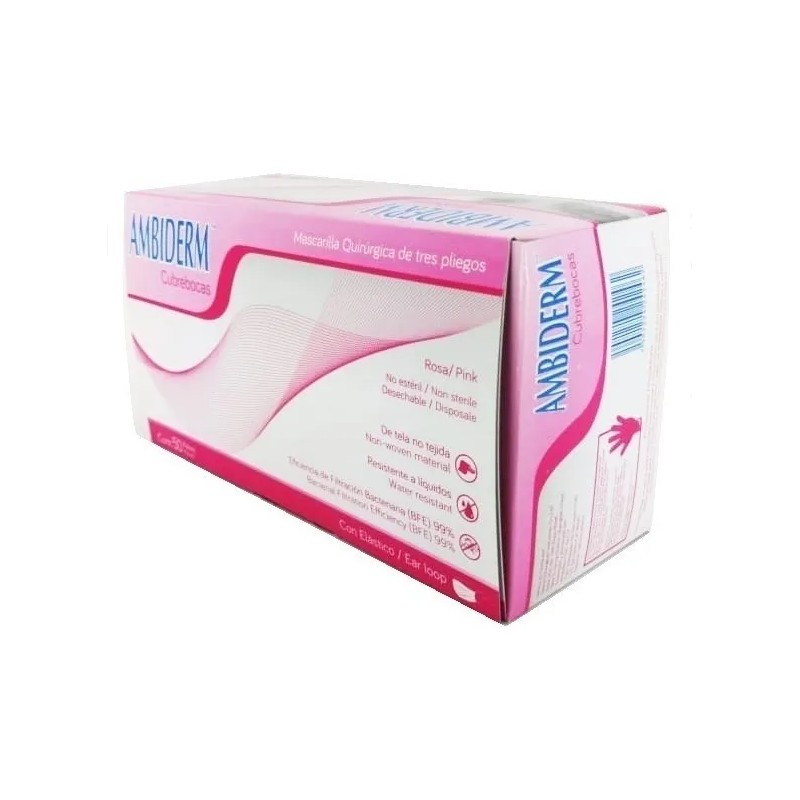 Cubre Bocas 3 Pliegos Ambiderm Rosa Caja C/50