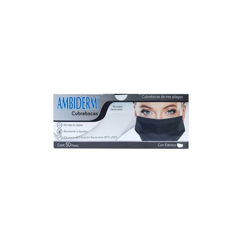Cubrebocas Ambiderm Negro Plisado Tricapa Termosellado 50pz