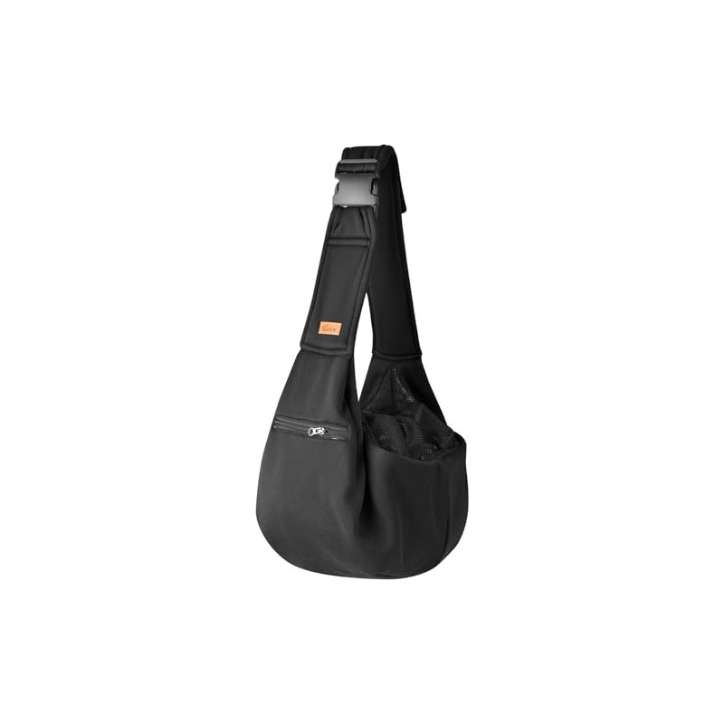 CUBY Dog and Cat Sling Carrier, Hands Free Reversible Pet Papoose Bag, Soft Pouch Adjustable, Suitable for Puppy Cats for Outdoor Travel (Black, M-Adjustable Strap)
