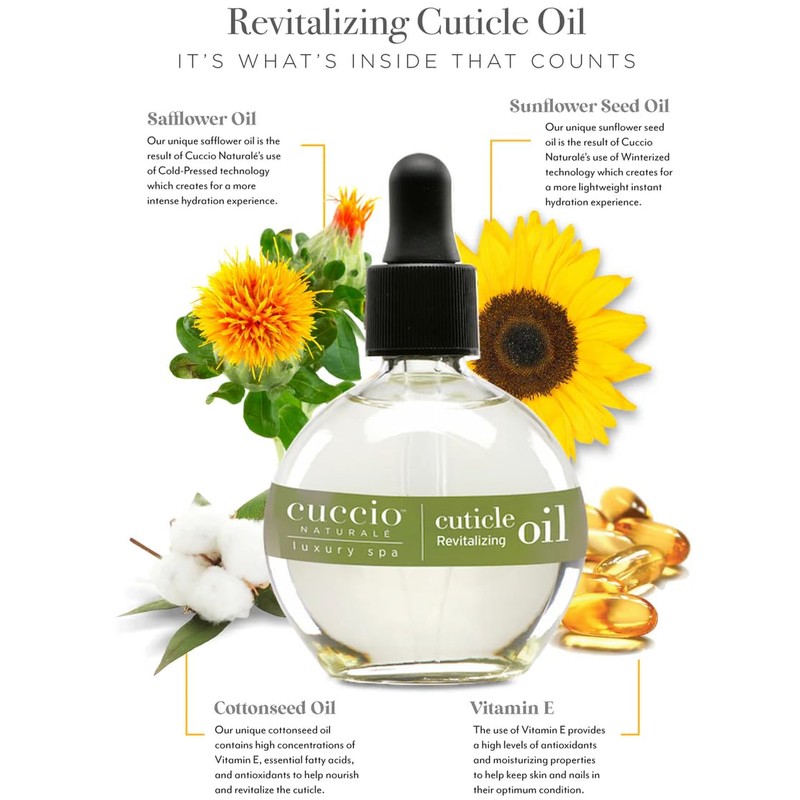 - SPA RESULTS FROM HOME. Don't overpay for your luxury! Treat yourself to an at-home manicure with this spa-readyproduct; housed in a classy bottle design, the Cuticle Revitalizing Oil's delicious scent and salon-quality properties are a delicacy