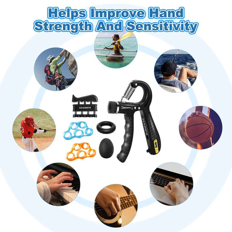 CUCDOFO 6 Pack Grip Strength Trainer Set Adjustable Hand Gripper with Counter,(XL) Finger Strengthener,Grip Trainer & Hand Grip Strengthener for Muscle Building,Injury Recovery,Improve Grip Gtrength