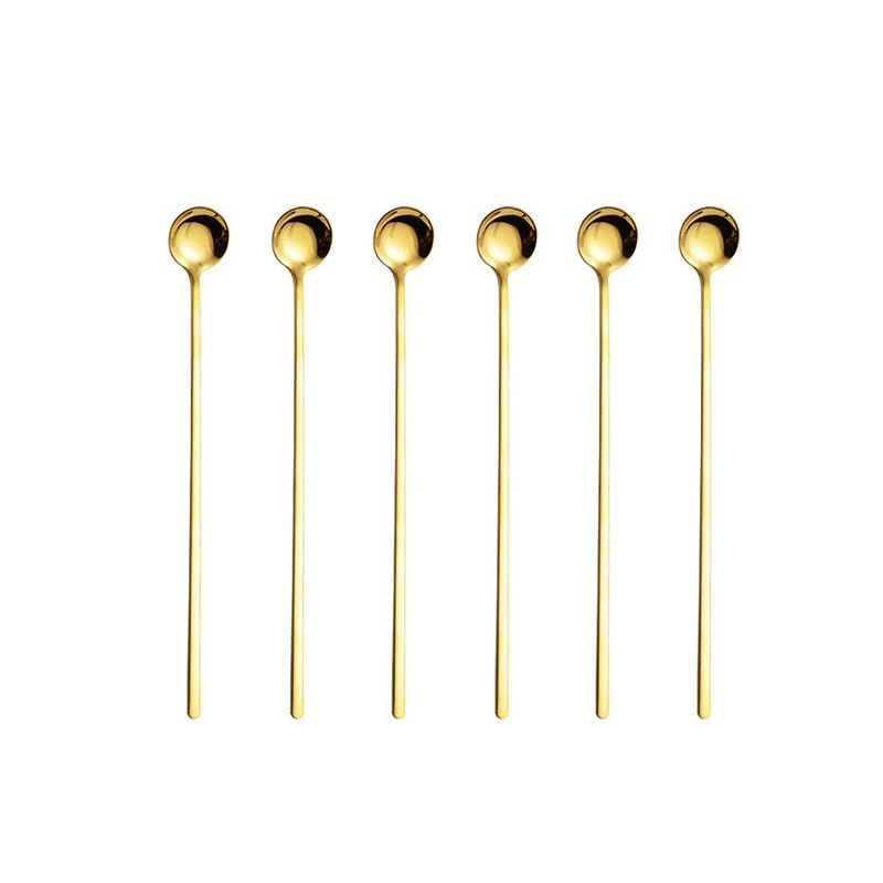 Cuchara mezcladora de mango largo de 9.45 pulgadas, cuchara de acero inoxidable, cucharas de té helado, cuchara de café, cuchara de helado, cucharas de coctel, 6 unidades (dorado)