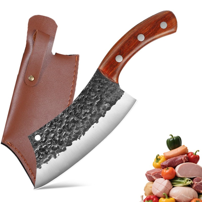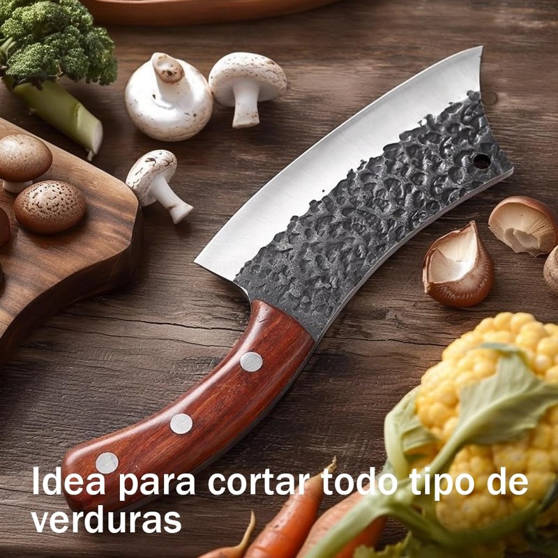 • 【Cuchillo de Chef Profesional】Hecho de acero de alto carbono 5Cr15MoV de alta calidad con un mango de sándalo rojo que no sólo es antideslizante, sino también ergonómicamente curvado y perfecto para largas horas de uso, este cuchillo es una mezcla perfecta de espíritu samurai histórico y ergonomía de la cocina moderna.