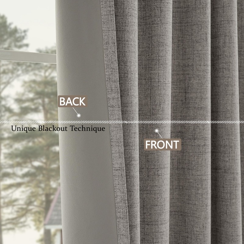 - 【100% BLACKOUT MATERIAL】CUCRAF linen look full blackout curtains are made of faux linen textured fabric with 3 layers.Curtains for living room can 100% block sunlight and ultraviolet rays and prevent furniture from being exposed to the sun.The natural curtains have soft feel, exquisite workmanship, high curl and very durable - not easy to fade under direct sunlight for a long time.
