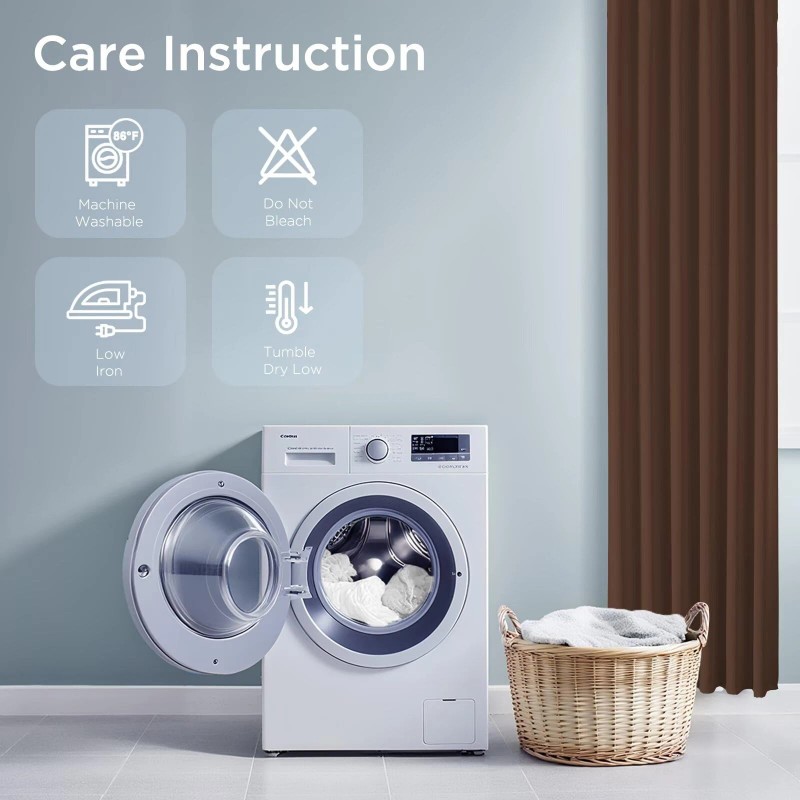 - CARE INSTRUCTIONS: Machine washable below 86°F on gentle cycle. Room darkening Fabric will not be ruined after washing. Iron on low setting as needed. Do not bleach. Tumble dry low