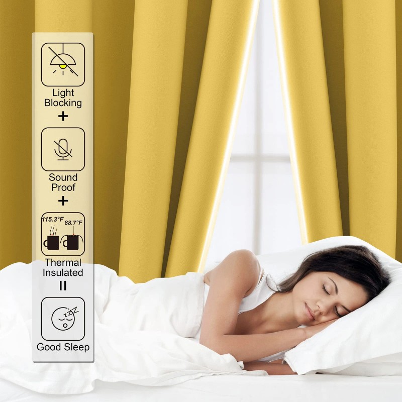 CUCRAF Lemon Sun Blocking Curtains 52X63 Pack Of 2 Thermal Insulated Room Darkening