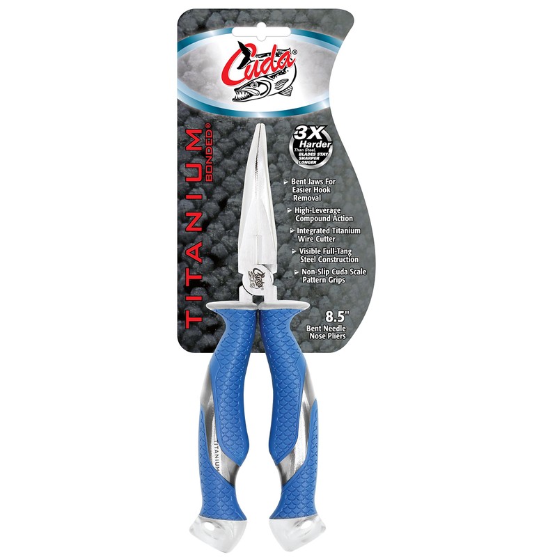 Cuda Brand Fishing Products, Titanium Bonded Pliers, 8.5" Bent Needle Nose, Blue (18829)