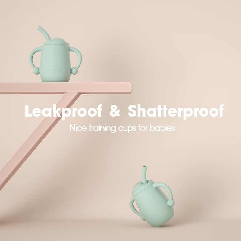 - LEAKPROOF, SHATTERPROOF: The liquid won't come out through the lid, it can keep the damage to a minimum and keep your child’s clothes and the floor nice and clean. The silicone training cup is shatterproof as well, it won't break when dropped.