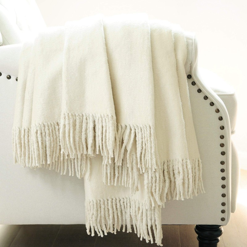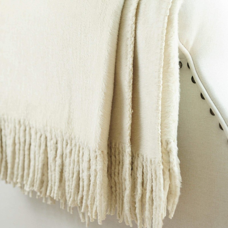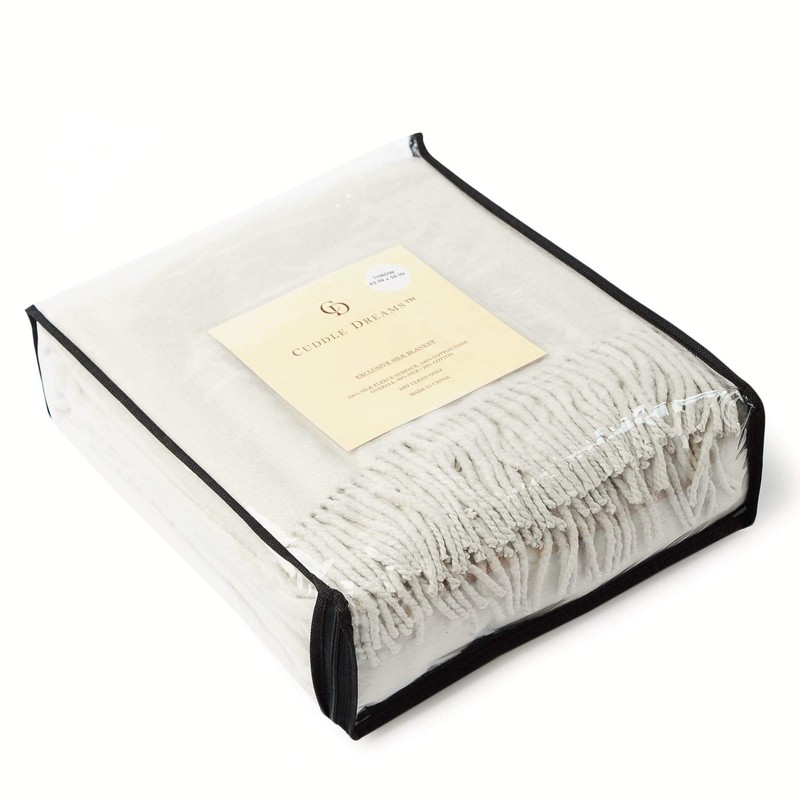 CUDDLE DREAMS Exclusive Mulberry Silk Throw Blanket with Fringe, Naturally Soft, Breathable (Ivory)