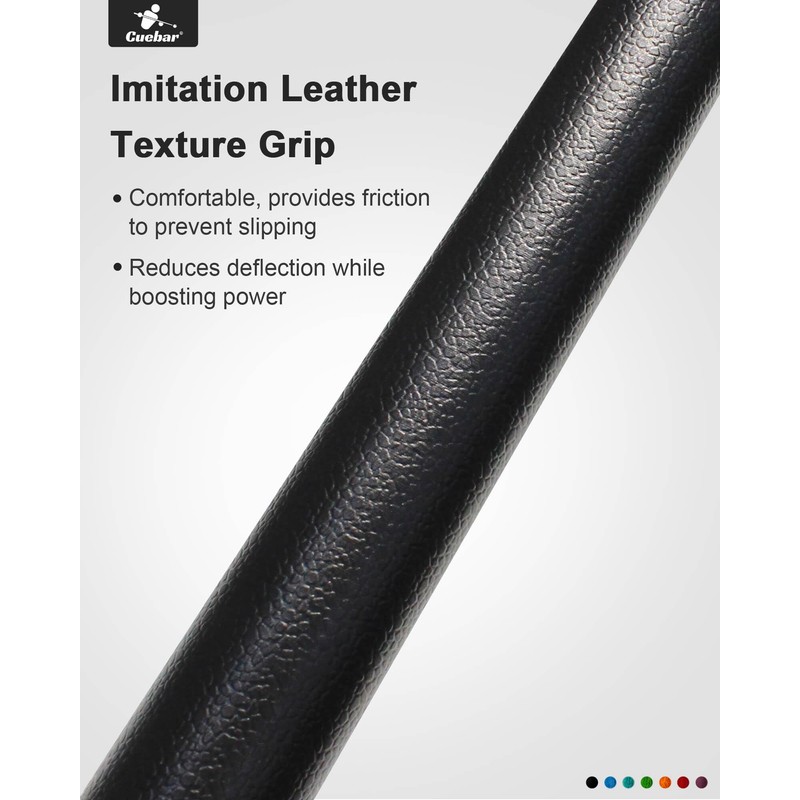 - ENHANCED GRIP DESIGN: The pool stick's ergonomic imitation leather wrap provides a comfortable grip, is scratch-resistant, and easy to clean. It offers excellent shock absorption for reduced vibrations during play. The cue butt has a black rubber bumper for added protection.