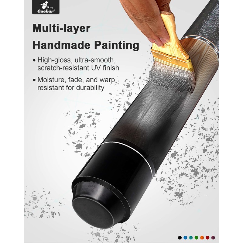 - CLASSIC HAND-PAINTED COLORS: Hand-painted with trendy color and multi-layer sealed, this cue is resistant to warping, ensuring long-lasting durability for years of play.Its beautiful appearance is allways chic on the billiard table and an ideal gift for billiards enthusiasts.
