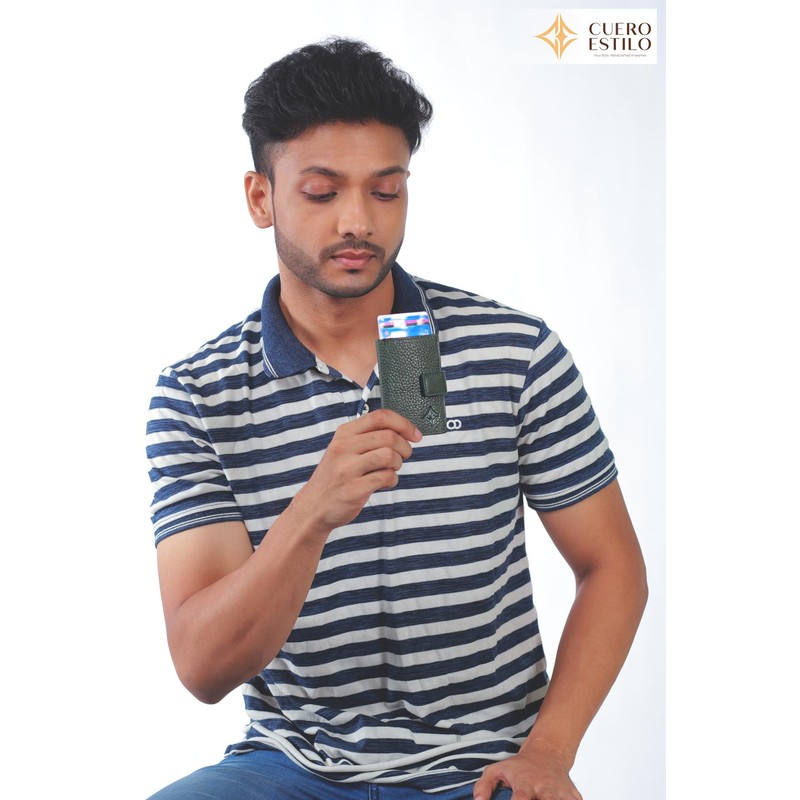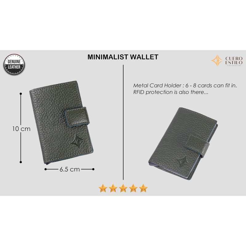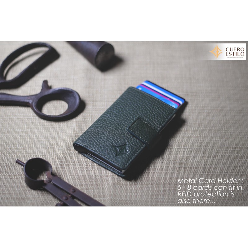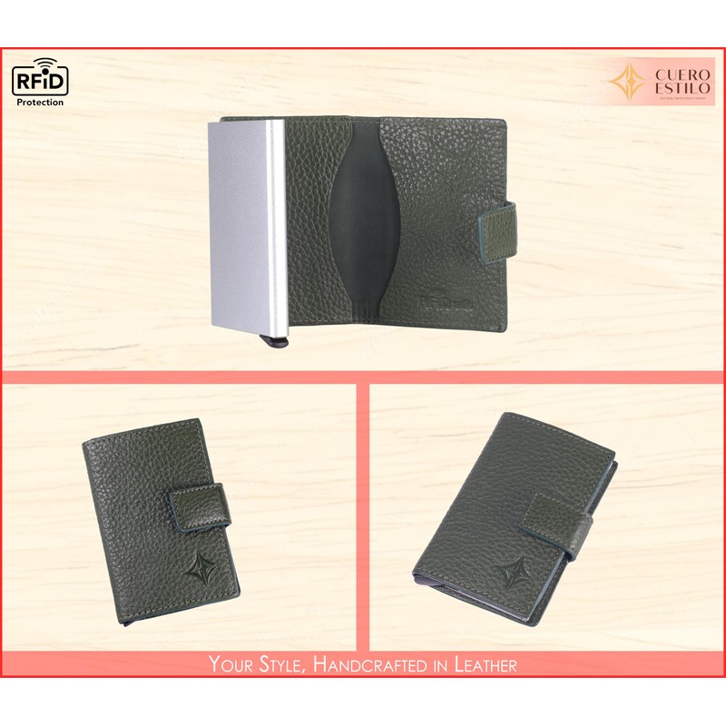 Cuero Estilo Leather Card Holder (Metallic Style) – RFID Protection, Popup Access, Water-Resistant Floater Leather, Multiple Color Options., Olive, Leather Card Holder (Metallic Style)