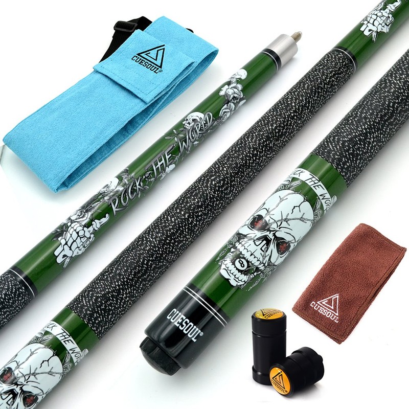CUESOUL 57 inch 19oz 1/2 Maple Pool Cue Stick Kit- Rock The World Stylish Pattern Cue Design in Blue Paint