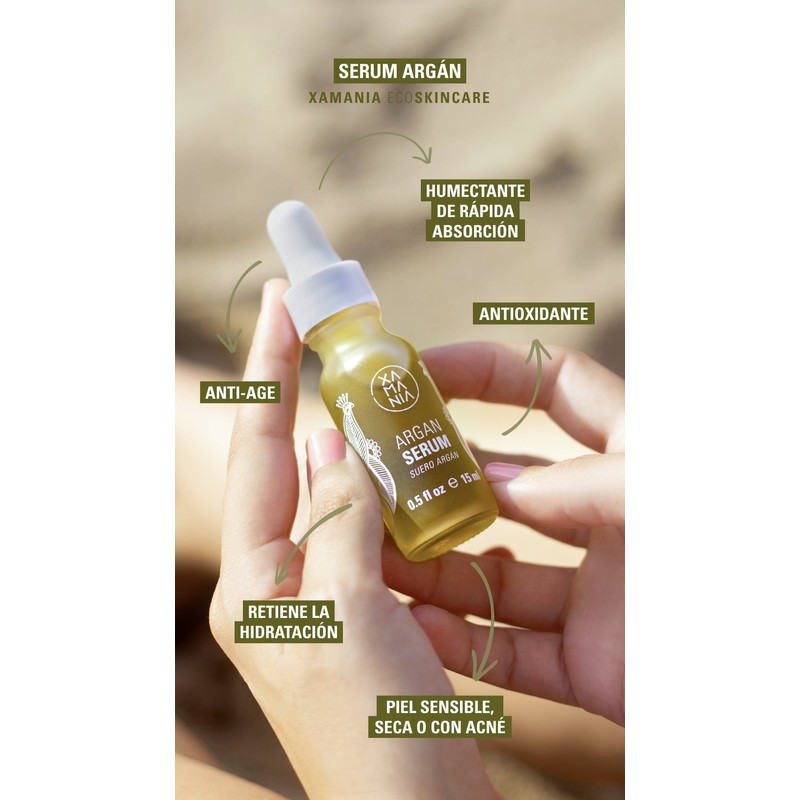 Serum humectante de rápida absorción formulado con argán y jojoba orgánicos100% natural Su alto contenido en antioxidantes protege tu piel promoviendo la regeneración. Contiene naturalmente escualeno, un eficáz emoliente antiedad que protege la barrera cutánea y retiene la hidratación, con lo que conseguirás una piel más suave y tersa.