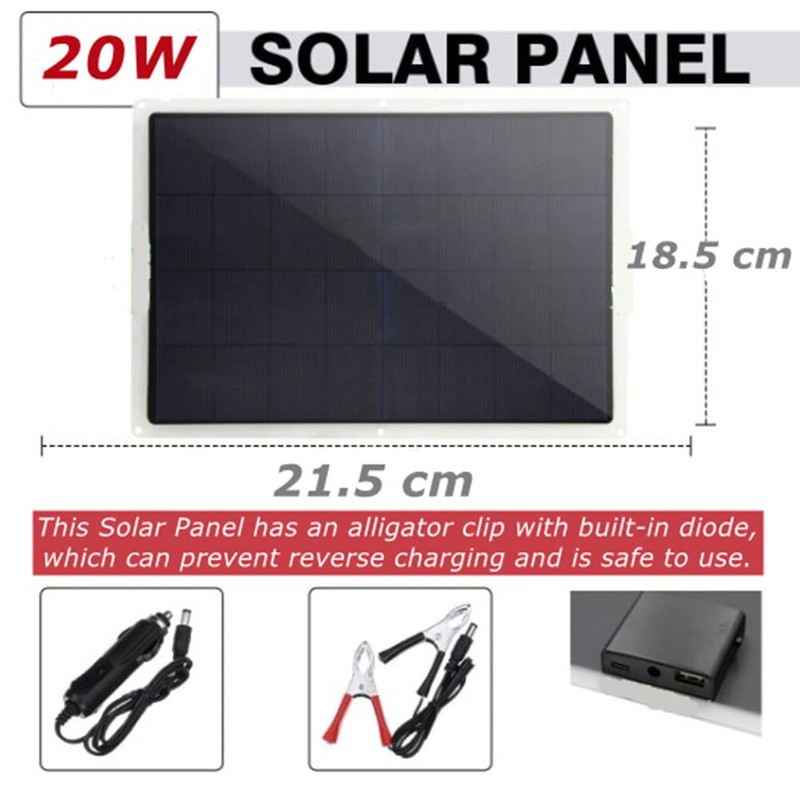 Cuifati Solar Panel Kit 20W 12V Monocrystalline Solar Panel Portable Power Backup Kit Upgrade Waterproof Controller for Car, Boat, Automotive, Motorcycle, RV
