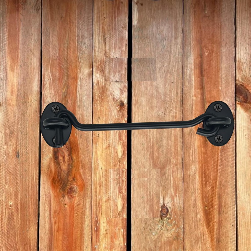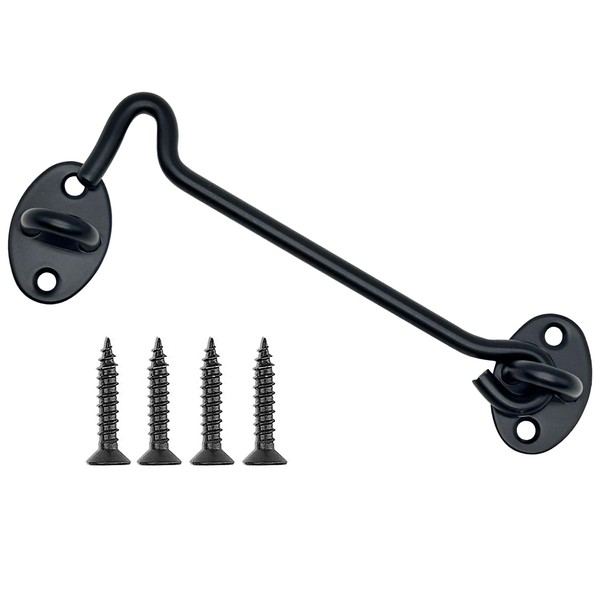 CUKAYO 4 Pack 6" Hook and Eye Gate Latch, Stainless Steel Rust-Resistant Barn Door Lock Cabin Hooks for Gate Shutters Window Slide Barn Shed Cabinet Bathroom, with 16pcs Screw,Black