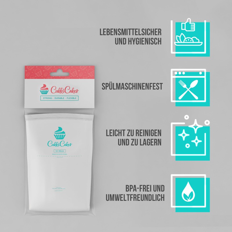 CukkiCakes Professional Reusable Piping Bag (40 cm) – Extra Strong, Flexible and Lightweight Piping Bag – For Decorating Cakes | Icing Bag Compatible with Piping Nozzles – Made in Japan