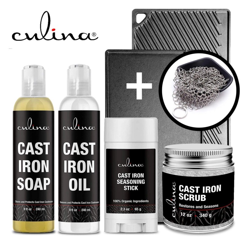 Culina Cast Iron Seasoning Stick & Soap & Oil Conditioner & Restoring Scrub & Stainl...