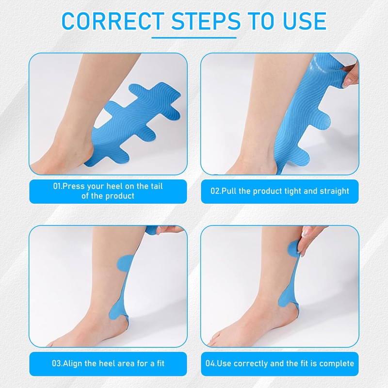 Culinavog Sports Tape, Pack of 8, 13.7 x 30 cm, Elastic Physio Tape for Heel Tendon, Portable Sports Tape for Adults, Waterproof Kinesiotape for Knee Pain, Heel Tendon (Multi-Colour)