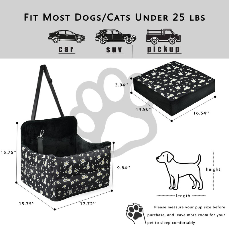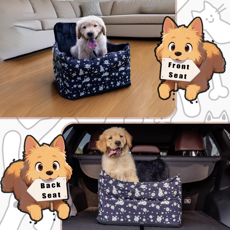- Secure Attachment: Built-in adjustable safety belts secure your dog’s harness. Strong straps and buckles lock the seat tight to your car seat, preventing shifts during sudden stops or turns—keeping your pet safe and comfy the whole ride