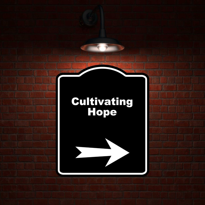 Cultivating Hope Black Sign Arrow Right Aluminum Composite Sign 20 x 24 inches