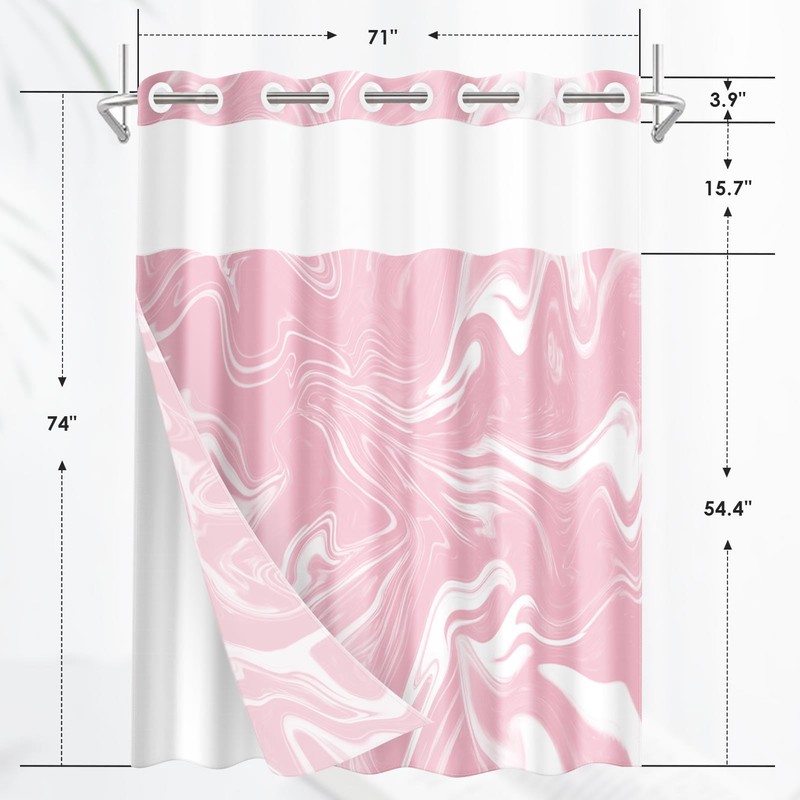 Culudea No Hook Pink and White Marble Shower Curtain with Snap in Liner Bath Curtain Bathroom Set with Double Layers Water-Repellent & Washable Fabric and Mesh Top Window 71x74 Inch