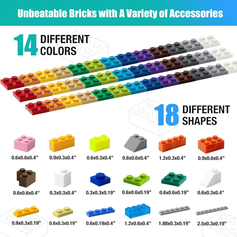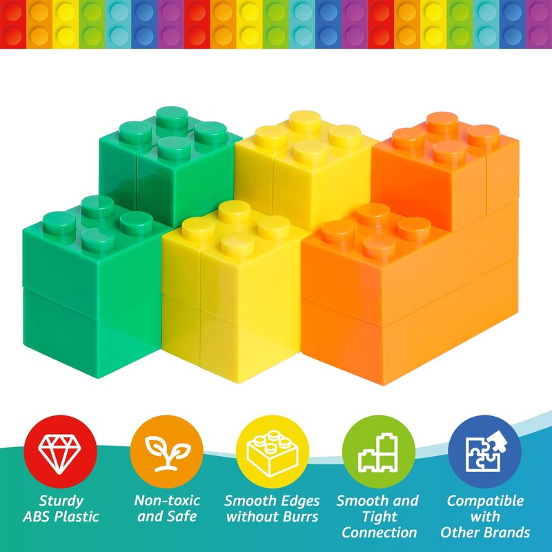 - Unlimited Creative Play: Our classic building bricks set includes a building ideas guide for little builders; Your kids can build in many different ways that inspires the creation of skyscrapers, cars, Christmas trees and more