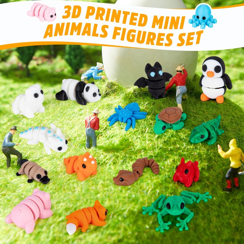 • 【Unique and Fun Design】These mini animals figures set include 16 unique creatures, and the 3D printed animals integrate a unique articulated structure to give the toys a vivid posture. They are designed to provide a visually stunning and fascinating experience.