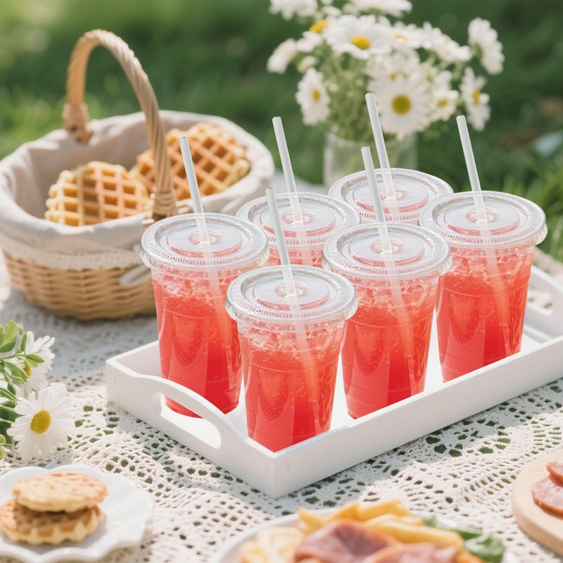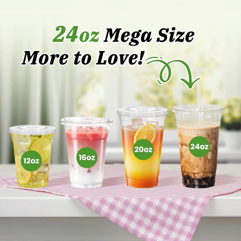 - 【Value Pack】Includes 100 sturdy disposable cups,100 secure lids and 100 individually wrapped straws, enough for large uses. 24oz large plastic cups can quench the thirst of fitness enthusiasts, long-distance drivers and outdoor enthusiasts