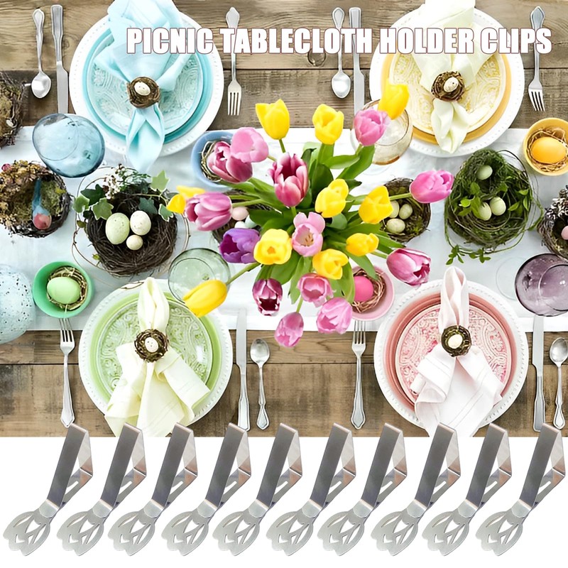 - ESSENTIAL FOR OUTDOOR EVENTS AND PICNIC Whether you're hosting a backyard BBQ, a picnic or a beach party, our tablecloth holder clips are essential accessories. They eliminate the annoying constant readjustment of tablecloths, so you and your guests can enjoy your outdoor event without interruptions.
