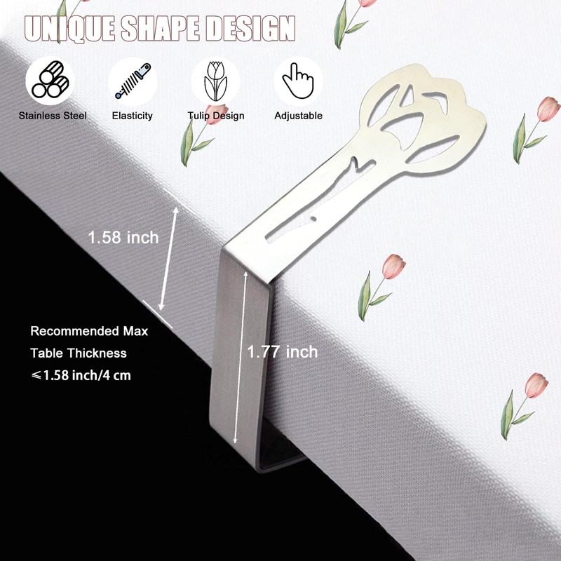 - SECURE KEEPS TABLECLOTHS IN PLACE With our tulip tablecloth holder clips, you no longer have to worry about tablecloths slipping or flying away during outdoor events or windy conditions. These clips provide a firm grip and hold your tablecloth securely in place.