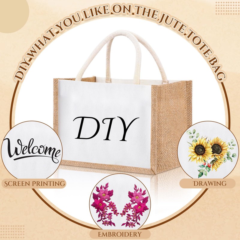 - Practical and Thoughtful: delicately designed with PVC film inside, the burlap tote bag with handle is waterproof and stain resistant inside; You can easily wipe the inner parts of burlap jute bridesmaid bags to keep clean, bringing lots of conveniences