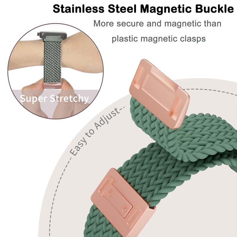 CUNUJIX Braided Bracelet Replacement for Garmin Venu Sq/Venu Sq 2 Wristband, 20 mm Elastic Nylon Magnetic Clasp Replacement Strap for Garmin Venu Sq Music/Venu Sq 2 Music Women Men, Nylon, No gemstone