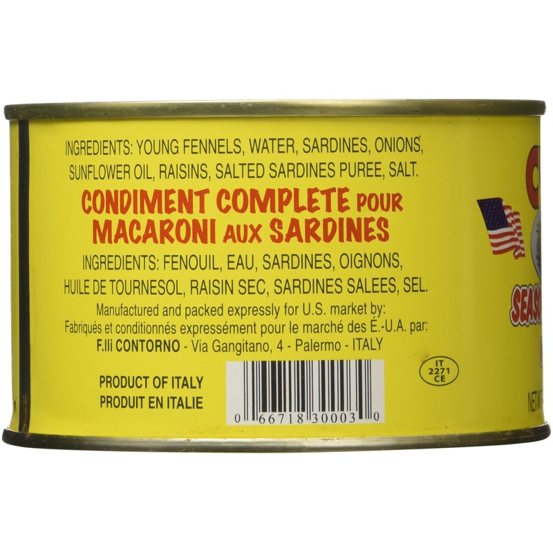 Cuoco Condimento per Pasta con Sarde is the classic topping and seasoning for this traditional Sicilian dish. It is made with sweet young Fennel, Sardines, Raisins, Onions, Oil and Spices.