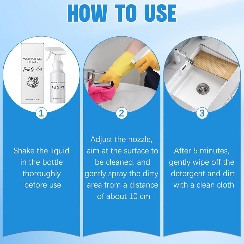 - 【Wide Application】Whether it's your bathroom or kitchen, this cleaner is suitable for a variety of surfaces. Save time and effort with one product