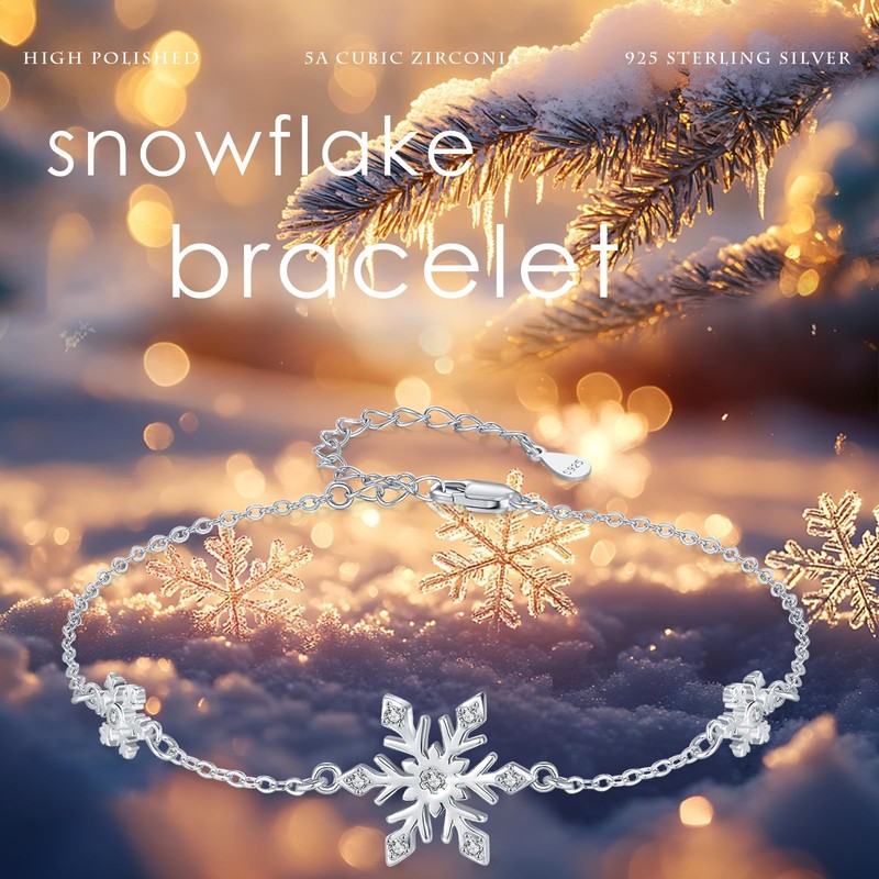 - 【Christmas Snowflake Bracelet】The snowflake is white, clean, a symbol of purity and rebirth, like a kind and pure heart, the spirit of love and joy. Snowflake bracelet as birthday gift for a woman who born in winter. Perfect for her outfits to family gatherings or Christmas party.