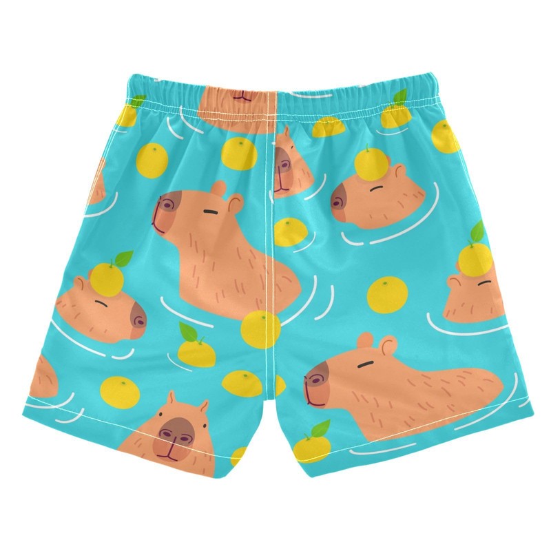 CUPADA Cute Capybara Orange Boys Swim Trunks Quick Dry Bathing Suit Summer Swimsuit Board Surfing Beach Board Shorts, M