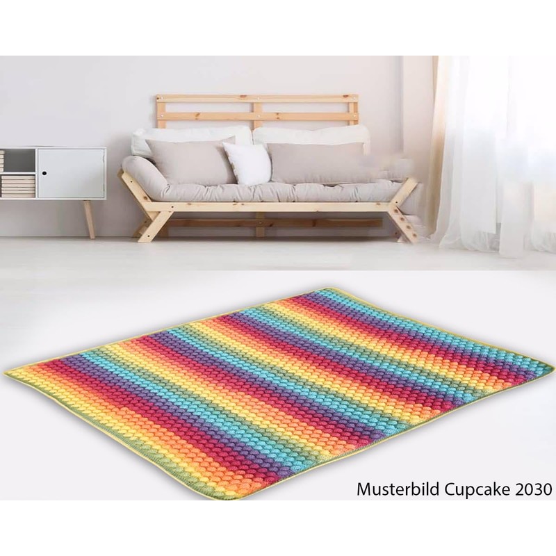 Our Wollbiene cupcake impresses with a colourful colouring that forms stripes by itself. This provides lots of fun and excitement when processing.