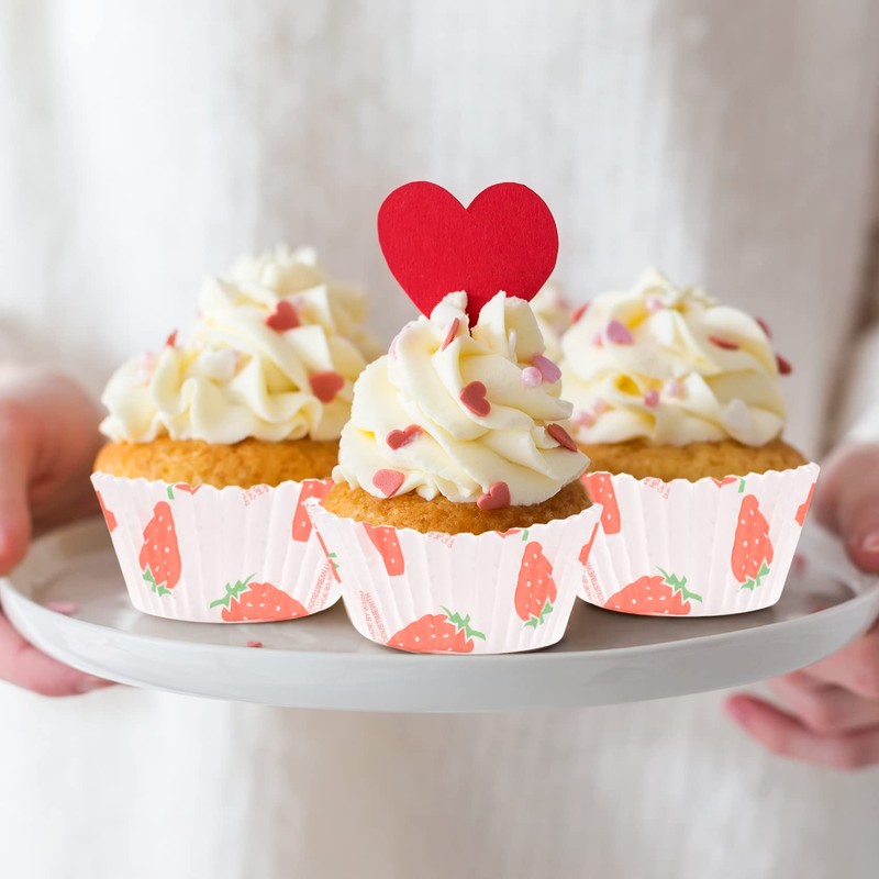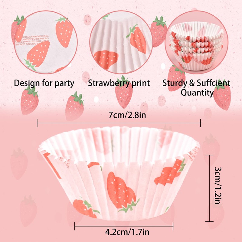 - 【Widely Used】Strawberry muffin liner is great for making cupcakes, baking muffins, snack cups and so on. It is suitable for the birthday, wedding, bachelor party and anniversaries to prepare tea dessert.