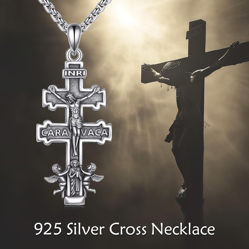 CUPENDA Caravaca Cross Necklace 925 Sterling Silver Jesus Cross Pendant Necklace Cruz de Caravaca Crucifix Jewelry for Men Women