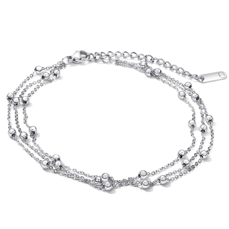 Cupimatch Women's Anklet, Fine Beautiful Ball, Stainless Steel, Multi Chain Adjustable Anklet, 21 cm, Rose Gold, Silver, Stainless Steel, Silver
