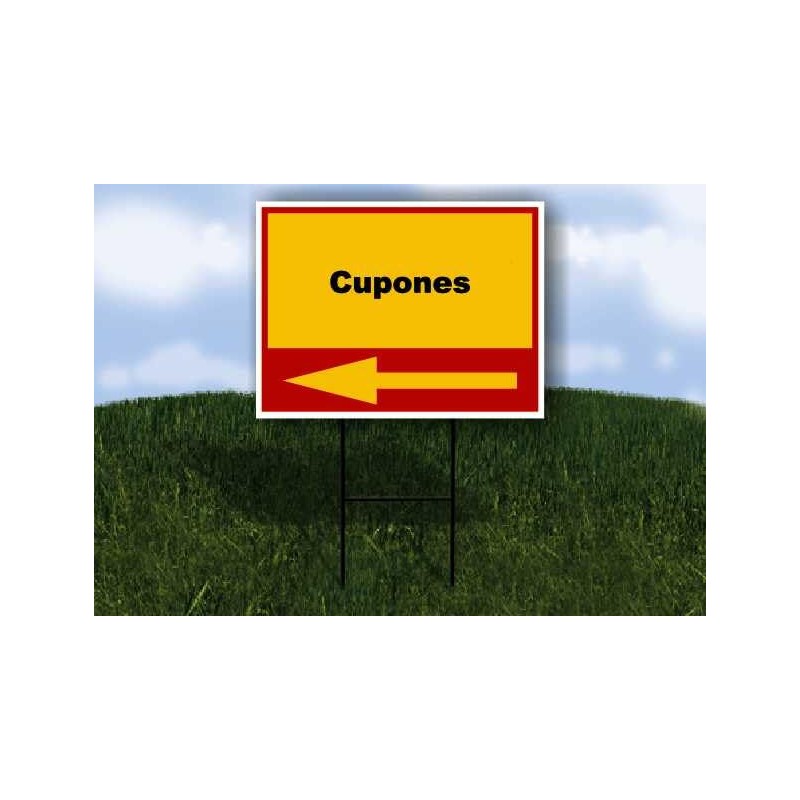 Cupones Spanish Red Yellow Left Arrow 1 Single Sided 18x24 in Yard Road Sign w/Stand