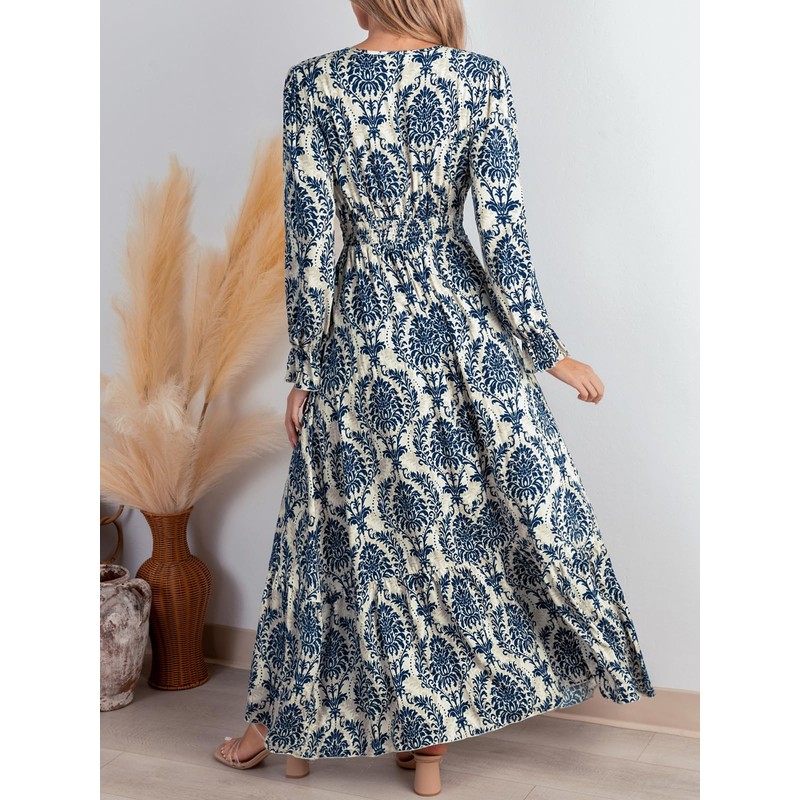 - Unique Design: The navy blue blouson long sleeve ruffle cuff maxi dress brings effortless elegance with its v neck, boho paisley print, smocked waist and finished with ruffled cuffs