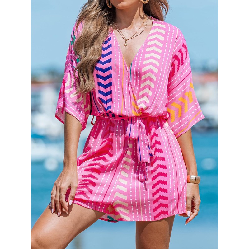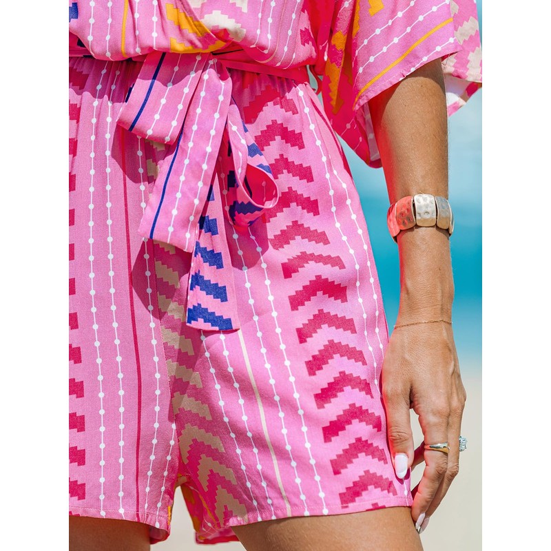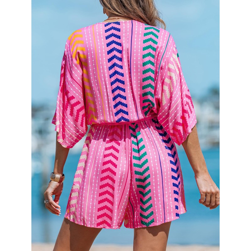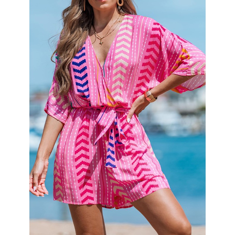 • [Unique Design]: The v neck casual summer short romper, featuring v neckline, wide leg, half dolman sleeves, unique pattern, belted waist, and mini length. This romper combines style and comfort for a versatile and summer trendy ensemble