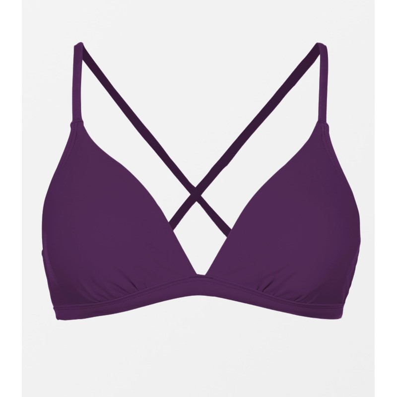 CUPSHE Women's Bikini Top Plunging V Neck Crisscross Back Self Tie Spaghetti Straps, Grape Purple, X-Large